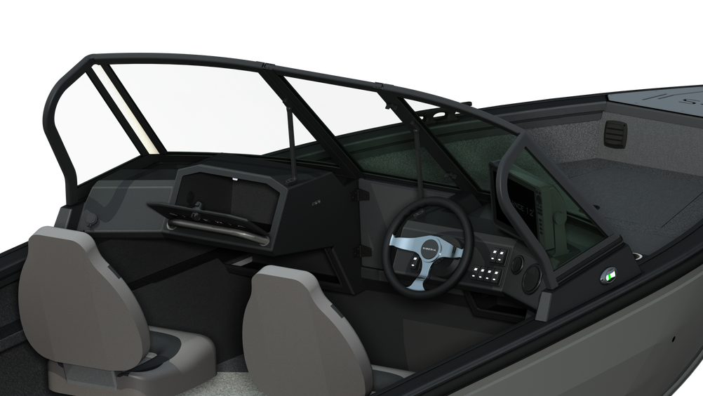 • Две консоли (судоводительская и пассажирская) из алюминиевого сплава с остеклением (закаленое стекло с интегрированной подсветкой), и калиткой между ними